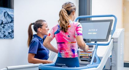 A device based on differential air pressure technology developed by NASA. This treadmill allows patients to perform gait rehabilitation by reducing body weight by around 80 %, which reduces joint strain, minimises impact and facilitates movement.