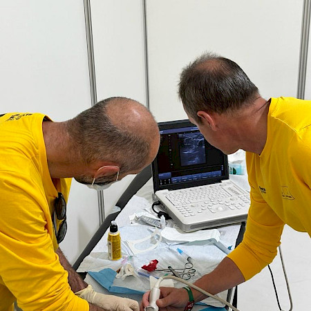 70 professionnels composent l'équipe médicale mobilisée, dont 28 sont des médecins, couvrant diverses spécialités telles que l'anesthésie, l'urgence, la radiologie, la chirurgie viscérale et orthopédique. En plus des médecins, des infirmiers, des physiothérapeutes et des techniciens de radiologie sont également présents. Bien que dépourvu d'un bloc opératoire formel, l'équipe dispose d'un camion équipé d'un appareil de radiologie et d'un scanner, permettant des diagnostics précis sur le terrain.