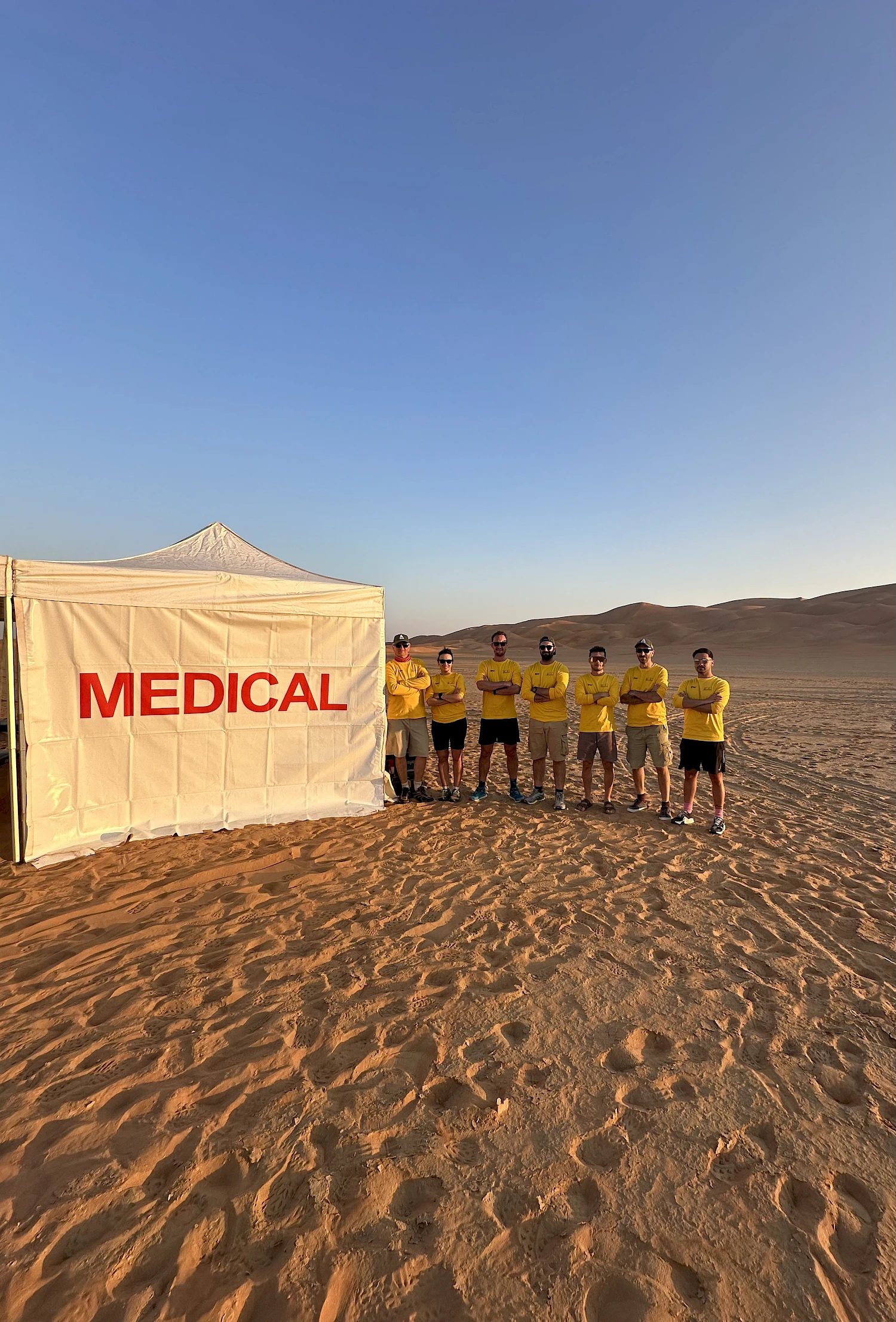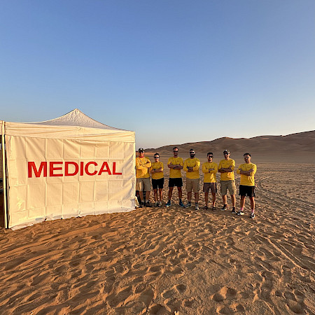 D'un point de vue médical, ce fut certainement la prise en charge de plusieurs patients traumatisés au cœur du Rub al Khali, accompagné de collègues aussi passionnés que compétents. J'ai eu l'opportunité d'apprendre énormément auprès des radiologues, des physiothérapeutes et des ostéopathes, travaillant pour la première fois côte à côte avec eux.