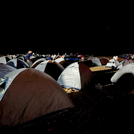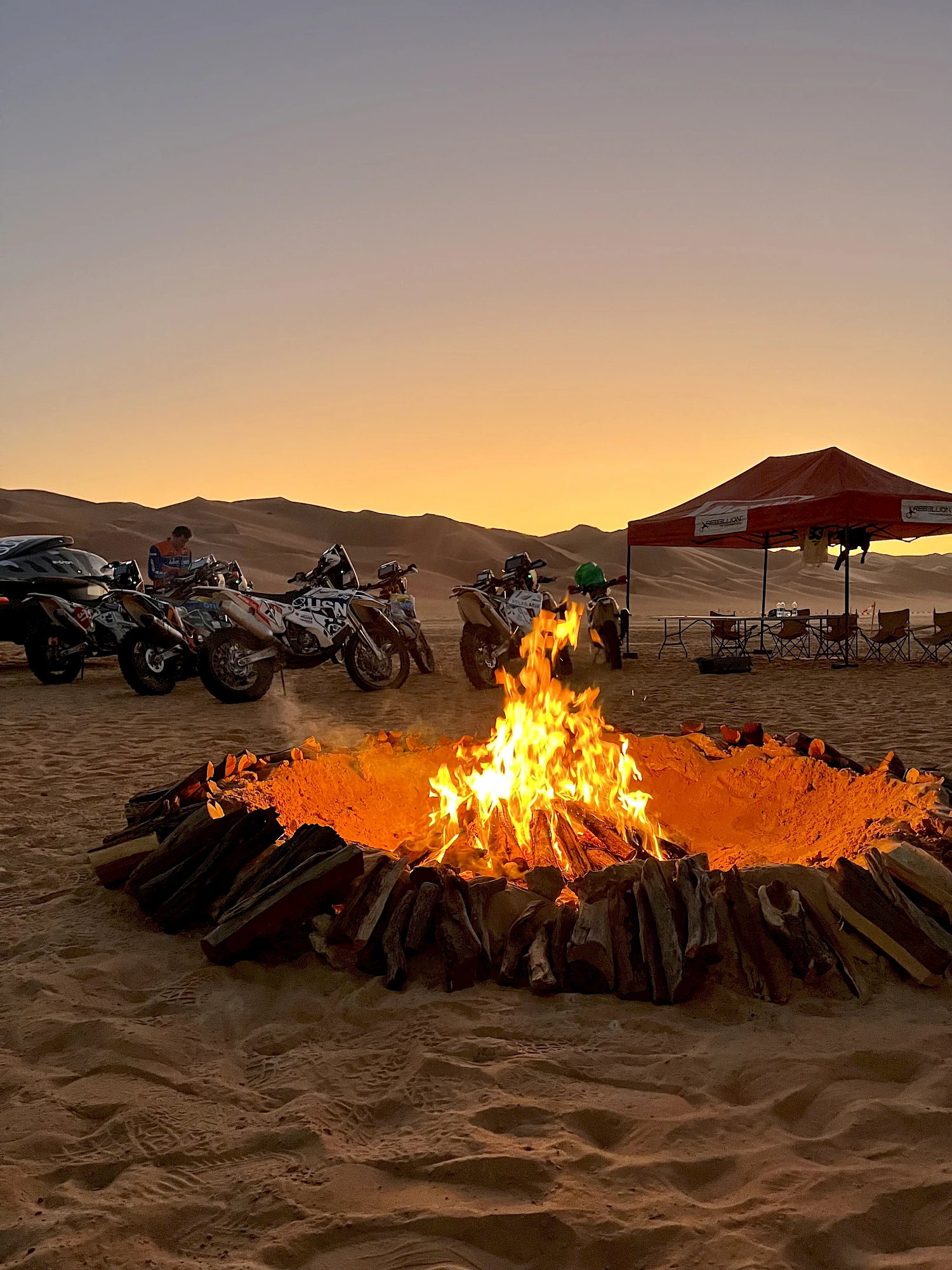 D'un point de vue humain, le moment le plus mémorable a été la nuit passée dans un bivouac isolé en compagnie de seulement un médecin, cinq physiothérapeutes, les cent premiers pilotes et quelques journalistes. Autour du feu, au milieu des dunes de sable, sous un ciel étoilé, nous partagions notre repas chauffé sur un réchaud. Un moment de partage avec une équipe exceptionnelle.