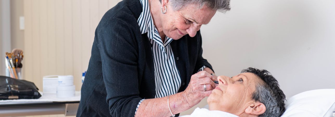 Esthéticienne de formation, c'est suite à son propre combat contre le cancer que Helen Crichton décide de proposer ces soins bénévolement aux patientes en oncologie. Il y a 35 ans, elle rencontre Gudi Briner, alors qu’elles sont toutes les deux maquilleuses à la RTS. Elles collaborent aujourd’hui depuis plusieurs années pour cette belle aventure.