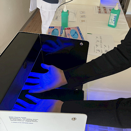 Des ateliers ont également été tenus par Marina Lepetit, Infirmière HPCI au sein de la clinique. Un atelier désinfection des mains ainsi qu'un jeu afin de rappeler quand le port des gants est obligatoire ont été organisés.
